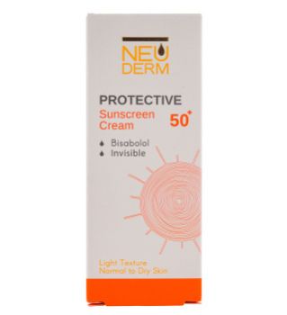کرم ضد آفتاب نیودرم (Neuderm) با SPF 50، محافظ قوی پوست در برابر اشعه‌های مضر UVA و UVB است.