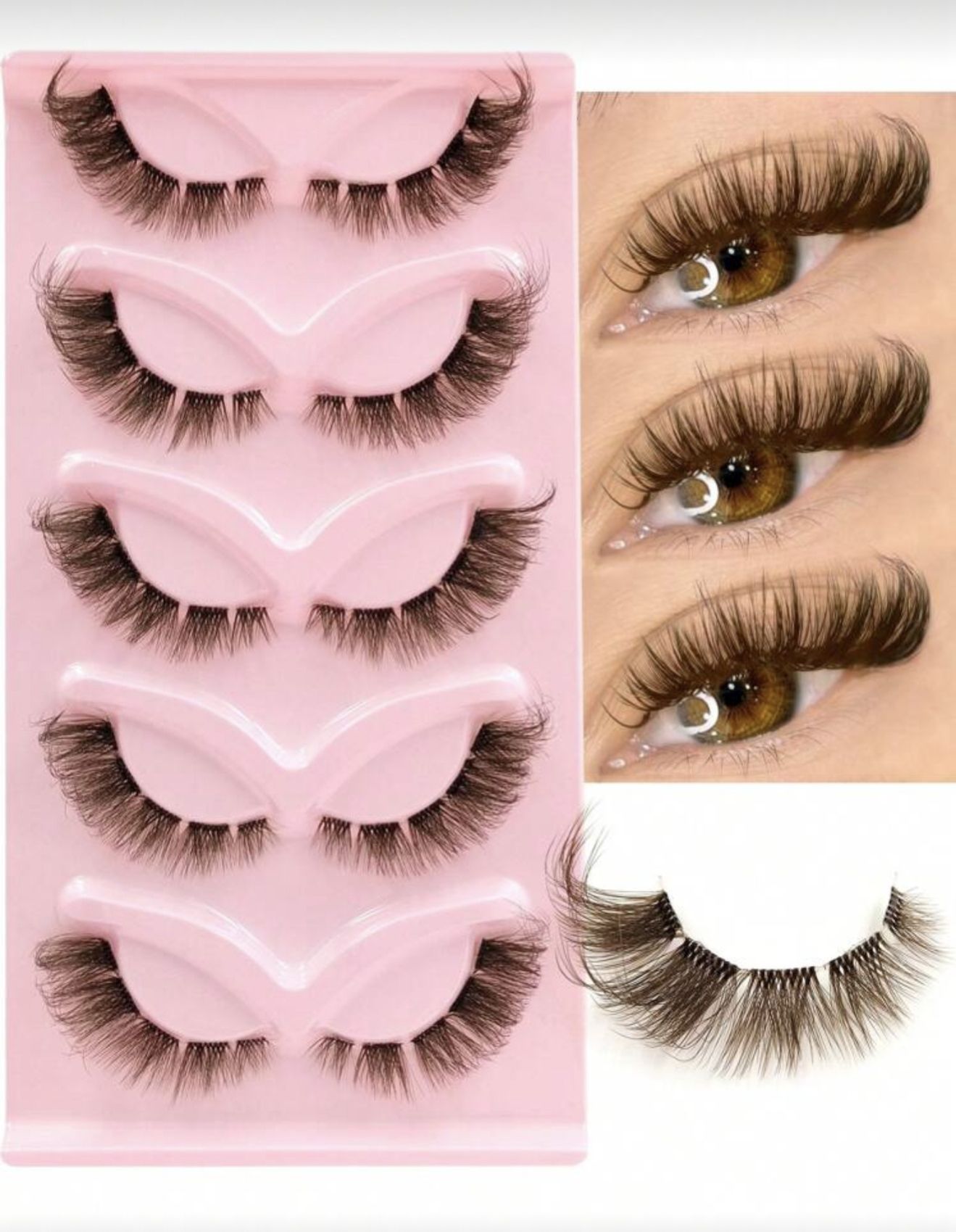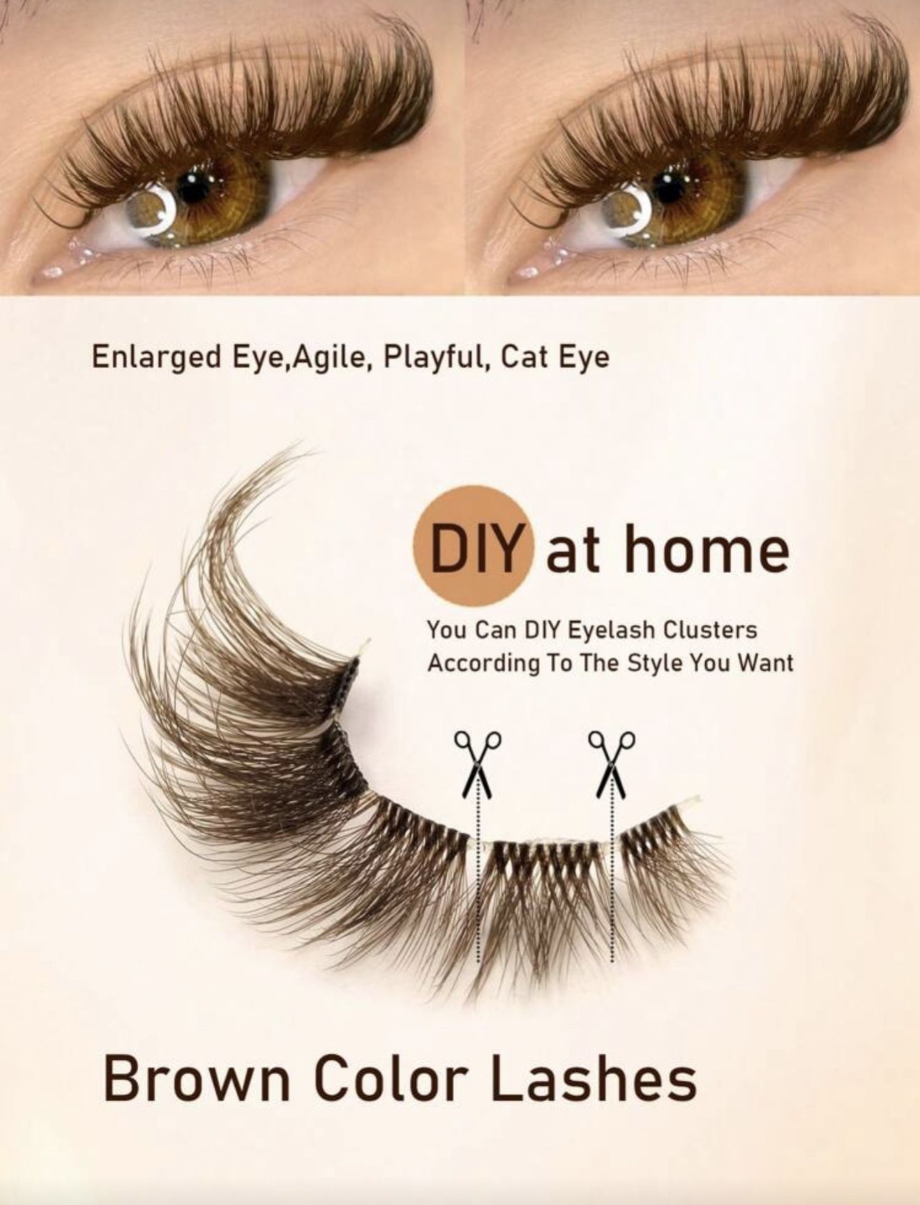 این مجموعه شامل ۵ جفت مژه مصنوعی DIY با رنگ قهوه‌ای و طراحی چشم‌گربه‌ای (Cat Eye / Fox Eye) می‌باشد. بند مژه‌ها شفاف است (Clear Band) تا جلوه‌ای طبیعی و بدون خطای دید ایجاد کند. این مژه‌ها مناسب کسانی است که دوست دارند چشمانی جذاب، کشیده و جذاب داشته باشند.