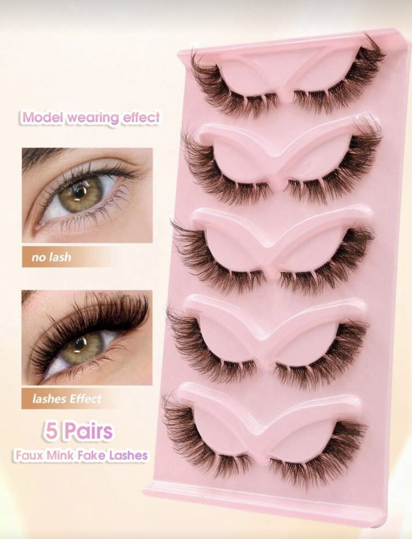 ست ۵ جفت مژه مصنوعی DIY رنگ قهوه‌ای طرح چشم‌گربه‌ای – بند شفاف